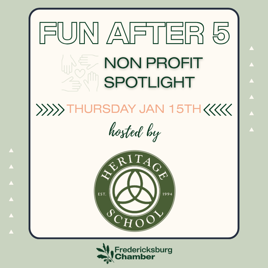 We’re kicking off the new year with a Fun After 5 that shines a spotlight on the heart of our community—our incredible local nonprofits. Join us at Heritage School as we celebrate the organizations that make Fredericksburg stronger.